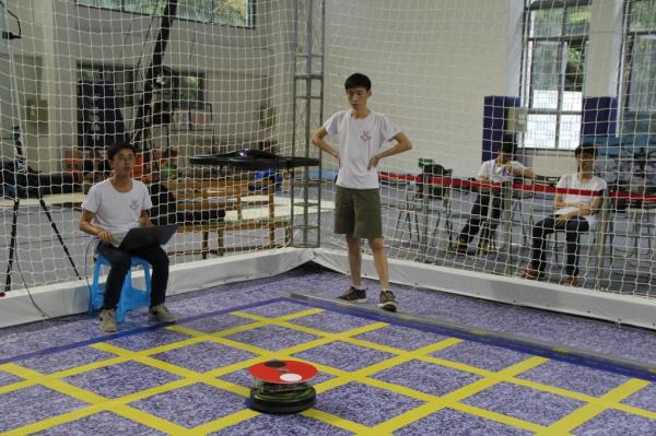 本届挑战赛决赛项目“无人机‘皮球’对抗”借鉴国际空中机器人大赛的比赛内容,起点高,难度大,是对12支参赛队伍的严酷考验。比赛采取对抗赛形式,由裁判员遥控启动iRobot地面机器人自主运动,两队无人机自主识别地面机器人,并对其进行拦截与转向控制,使其进入对方场地,即完成一次“进球”得分。比赛规定在每局一定的时间内“进球”得分多者为获胜队伍。“自主识别皮球对抗”项目是对队员们在视觉处理算法方面的考察。