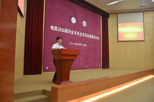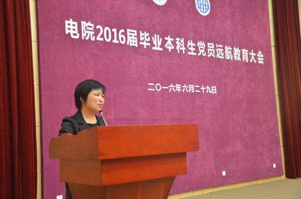 6月29日下午,探花 2016届毕业本科生党员远航教育大会在微电子学院一楼演播厅举行。学指委副秘书长、学生处副处长蒋立峰,院党委副书记杨一帆,院党委副书记李劲湘,以及电院全体思政教师、辅导员与学院2016届全体本科毕业生党员出席大会。大会由F12级党建指导教师杨帆主持。