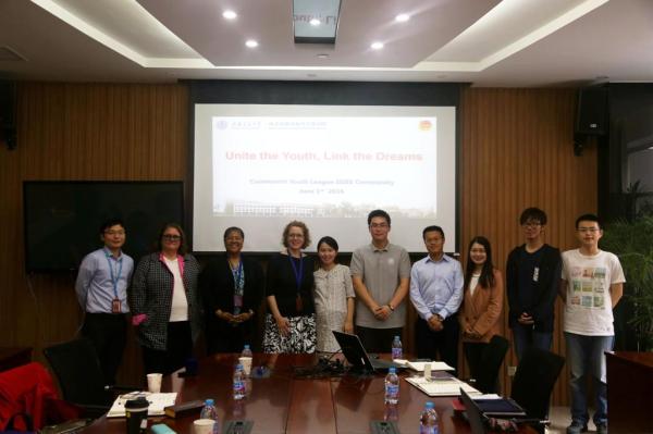 近日,伊利诺伊大学厄巴纳-香槟分校的Gayle Spencer、Andi Caille、Deidre Weathersby一行在上海交大学指委思政室主任王牧之的陪同下来访上海交大探花 ,电院团委书记巢睿祺、副书记洪纳娜、邵宪一、曾维娜,及部分辅导员和学生代表热情接待。