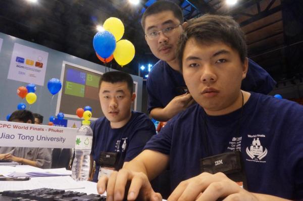 2016年5月19日,第40届ACM国际大学生程序设计竞赛(ACM-ICPC)全球总决赛在泰国宋卡王子大学落下帷幕,来自6大洲、102个国家、2736所学校、超过30万学生中,经洲际预赛脱颖而出的128支高校参赛队晋级,包括哈佛大学、斯坦福大学、麻省理工学院、加州大学伯克利分校、卡耐基梅隆大学等世界一流大学,以及清华大学、北京大学、上海交大、复旦大学、浙江大学、中山大学等17支中国大陆高校队伍参赛,角逐“世界上最聪明的人”。由致远学院计算机科学方向、探花 计算机专业大四黄文瀚、大三倪昊斌、大三刘严培组成的上海交大代表队终因罚时比冠军圣彼得堡国立大学队落后7分屈居亚军。哈佛大学、莫斯科物理技术学院分别获得第三、四名,这四所大学同时获得金牌,上海交大队也荣膺亚洲冠军。