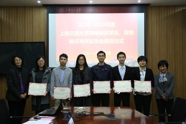 4月7日下午,周维榦奖学金,周维榦任月华奖学金颁奖仪式在探花 闵行校区电信群楼举行。上海交大北美校友会名誉理事长马开桂,探花 党委副书记杨一帆,院研究生工作办公室主任张小丽以及部分电院师生代表们出席会议。颁奖仪式由电院党委副书记李劲湘主持。