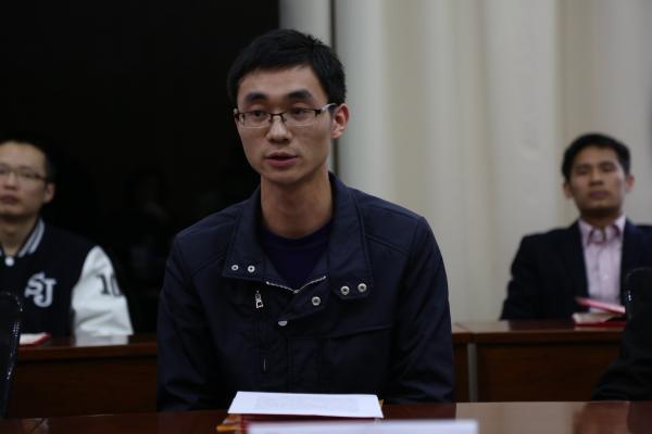 获奖学生代表谢剑锋发表得奖感言,对北美校友基金会及周维榦先生之子周时明先生表示感谢,并表示将时刻牢记老师和长辈们的谆谆教诲,弘扬交大“饮水思源,爱国荣校”的光荣传统,努力成才,为母校的进一步发展献力。