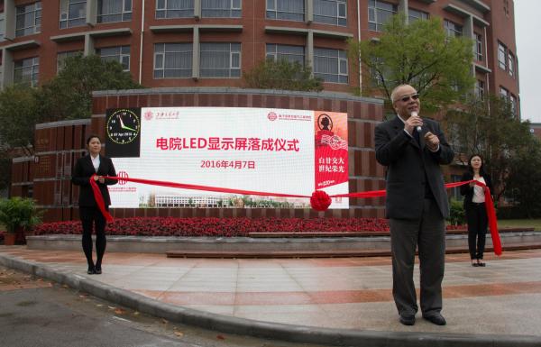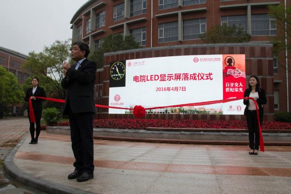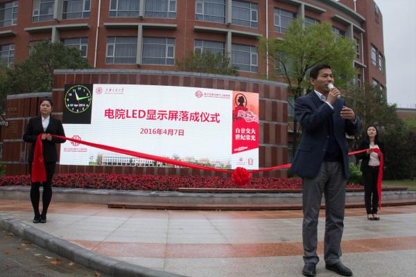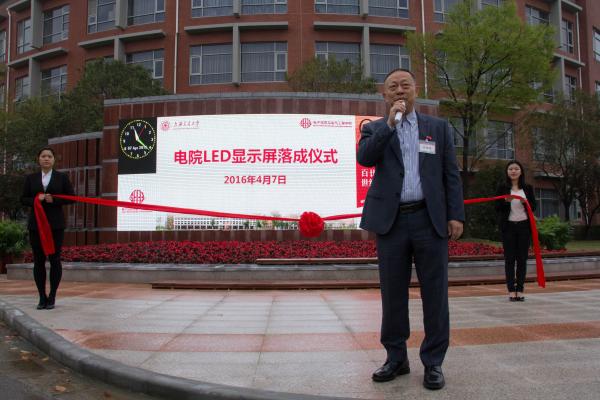 邰能灵在仪式上回顾了显示屏建设伊始的困难,并肯定了显示屏的功能。电子显示屏的落成不仅为电院师生带来便利,也为电院增添了文化气息,为电院的更好更快发展起到极大的促进作用。