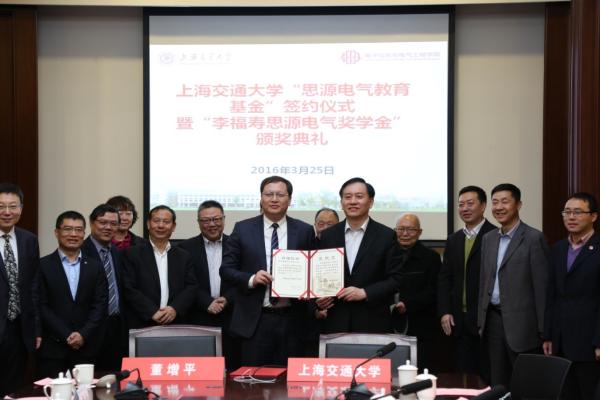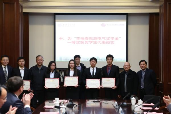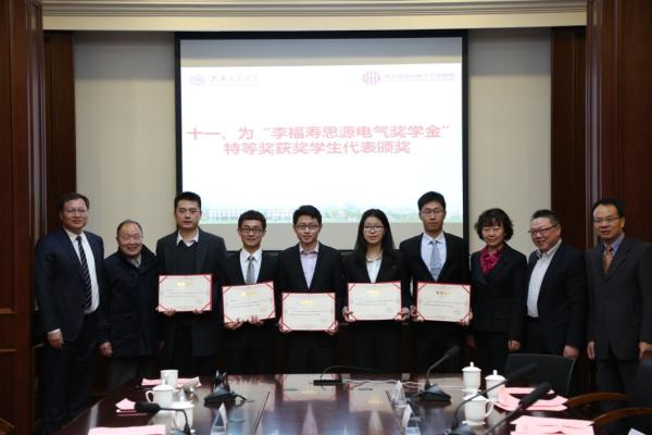 思源电气公司领导、电气系领导为“李福寿思源电气奖学金”特等奖和一等奖获奖学生代表颁奖。