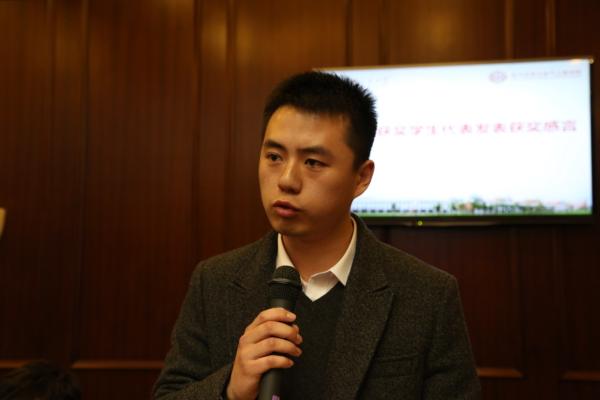 学生代表段若晨发表了获奖感言,他表示只有立志成才,才是对帮助他们的人的最好回报。电气工程系主任严正对思源电气公司、学校基金会和学院表示感谢,同时也对获奖学生提出了希望,希望他们不要辜负老师们的期待,以董增平学长为榜样,为社会进步贡献自己力量的同时不忘回馈母校。他表示会用好这笔捐赠,扶持青年才俊,奖励优秀学生,延续电气学科的百年品牌,再创辉煌。