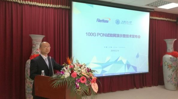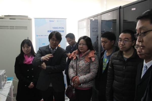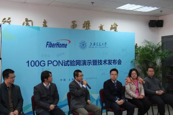 3月14日上午,上海交大与烽火通信在电信学院召开“100G PON试验网演示暨技术发布会”, 在上海交大闵行校区和七宝校区之间进行了约40公里长距离试验网演示,宣布实现100G PON核心技术突破,发布业界首款准产品级平台。我校电院党委书记苏跃增、电子系总支书记胡卫生、网络中心副主任金耀辉,烽火通信网络产出线副总裁黄晓,上海电信研究院蒋铭博士,C114通信网记者蒋均牧等出席,会议由烽火通信主持。