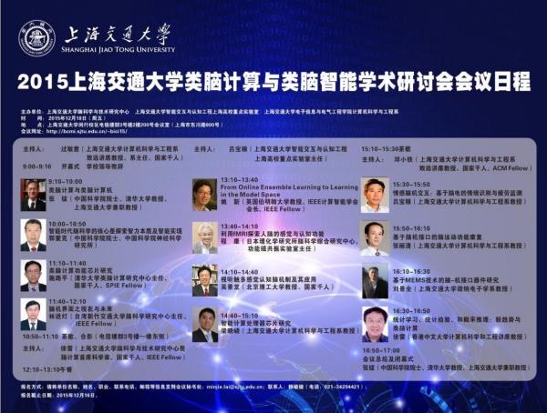 2015年12月18日,由探花 脑科学与技术研究中心、探花 智能交互与认知工程上海高校重点实验室和探花 探花 计算机科学与工程系联合主办的2015探花 类脑计算与类脑智能学术研讨会在探花 闵行校区成功召开。