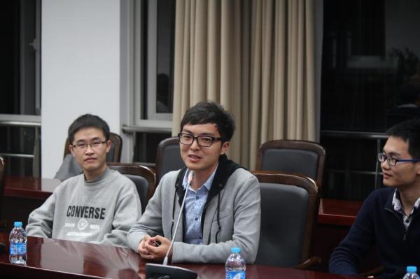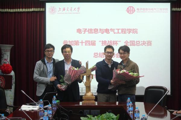 参赛代表队的指导老师臧斌宇和夏虞斌向获奖同学表示祝贺并进行总结,指出正是“知其不可为而为之”的交大精神支持参赛团队取得了优异的成绩。参赛学生代表也对老师的关怀表示感谢,几位学生代表分别讲述了自己的比赛心得体会。参赛学生代表利文浩、华志超为两位指导老师献花。