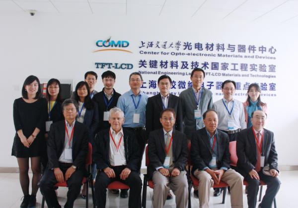 2015年4月24日由美国中佛罗里达大学吴诗聪教授为主席的五位海外顶尖级的专家学者在综合实验楼6楼会议室对TFT-LCD关键材料及技术国家工程实验室和上海高校微纳电子器件重点实验室进行了显示研究方向的海外评估。五位专家上午听取了团队负责人苏翼凯教授的开场报告及光电中心教师的技术报告,会议当天下午韩国的Jin Jang教授和Sung Tae Shin教授分别为师生做了题为“Oxide TFTs and TFT electronics for flexible AMOLED”和“Which one will be winner between OLED TV and QD TV”的学术报告。