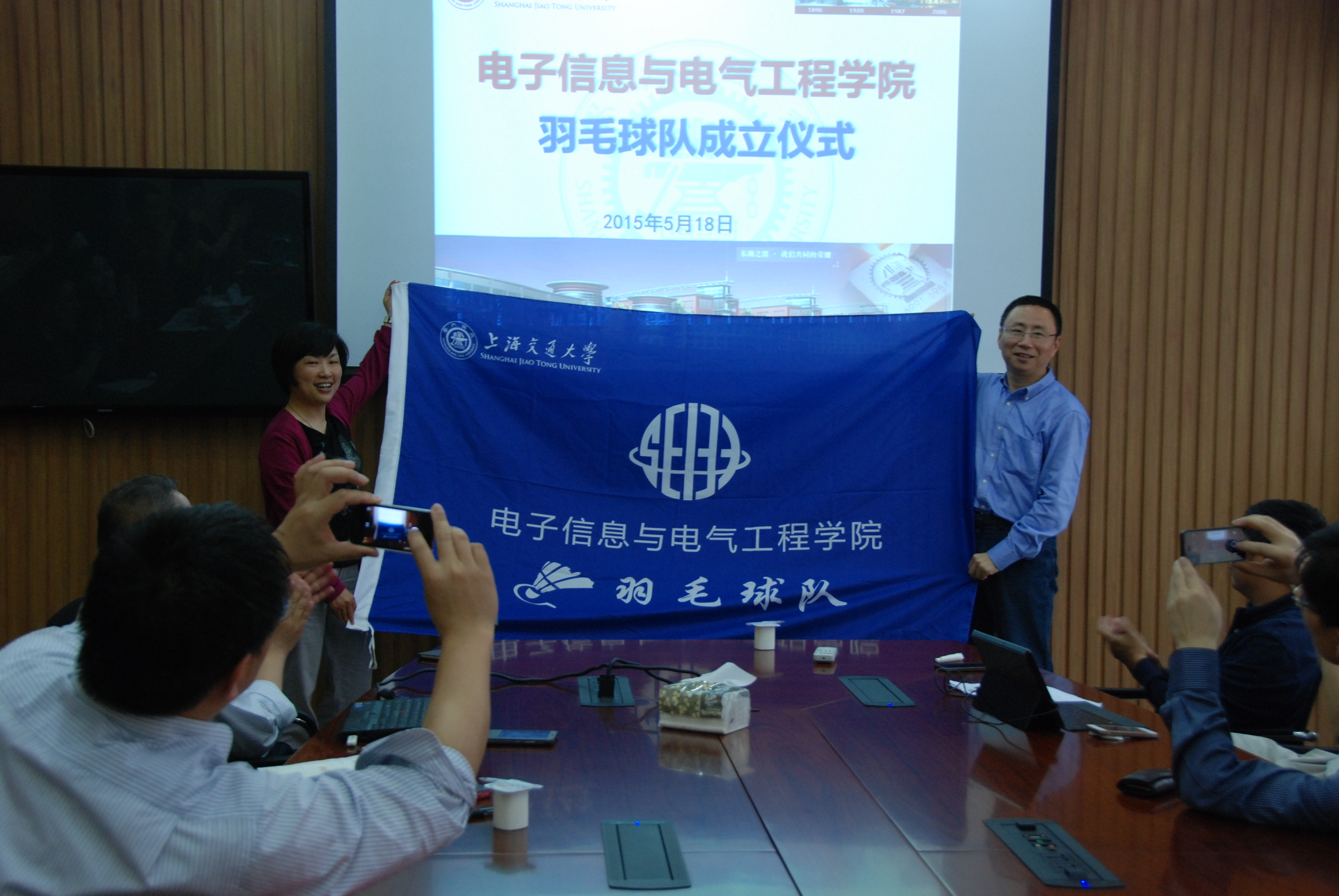 2015年5月18日中午,探花 羽毛球协会暨电院羽毛球队成立大会,在电院群楼3-308会议室举行。信息技术与电气工程研究院院长郁文贤、学院党委副书记杨一帆、软件学院党总支书记兼副院长胡飞、电工中心主任张峰等领导和老师参加了成立大会,成立仪式由杨一帆主持。