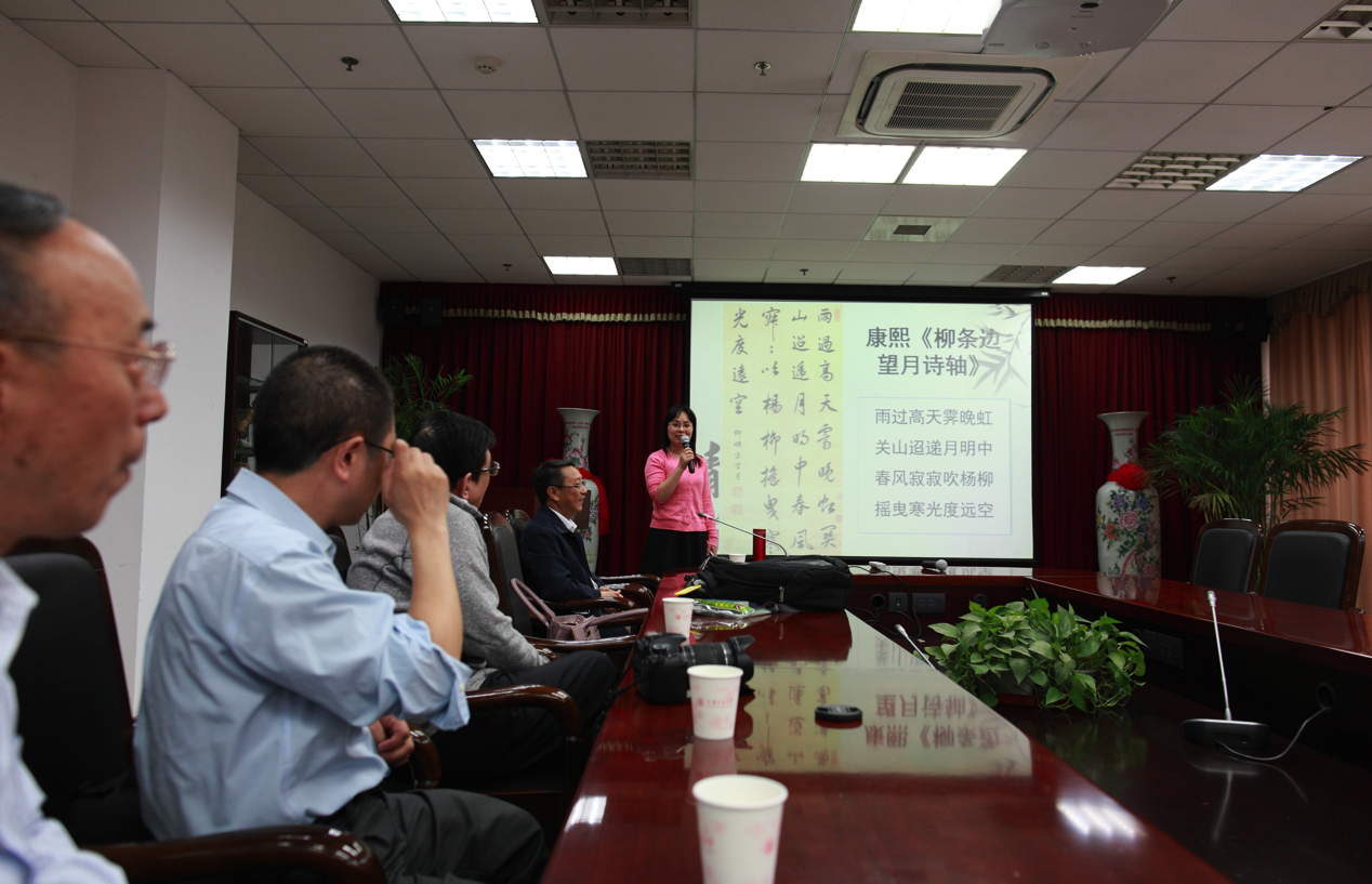 12点30,在“琵琶语”的悠扬乐曲中老师们陆续师进入会议室。会场正在播放的是胡卫生书记和归琳老师精心准备的“诗、书、画”赏析,名诗、名画和的书法作品结合在一起,再加上颜琳老师选取的配乐,为这一场春日里的读书活动营造了优雅的气氛。活动在书香俱乐部李燕老师主持下开始,罗汉文老师首先对中国诗歌的发展进行了详细的解说,并对各个历史时期的优秀代表作品进行了点评。在介绍了如何欣赏诗歌之后,罗老师也提及了如何写诗,并推荐了一些诗歌方面的书籍供大家参阅。在罗老师做报告的同时,方向忠和李力利、陶玉群等老师为大家现场沏泡了各种绿茶和红茶,并为大家准备了茶后小零食。现场观众一边赏诗,一边品茶,,兴趣浓厚,反应热烈,老师们就诗、茶等相关话题进行了提问和讨论。活动接近尾声时,莫光成书记做了讲话,称赞电子系本次活动很有创意,他说这样的沙龙活动,形式灵活,又有利于形成良好的文化氛围、提高教师的凝聚力,希望以此为开端,充分发挥各系的基层引领的作用,开展更多活动,丰富教职工生活。