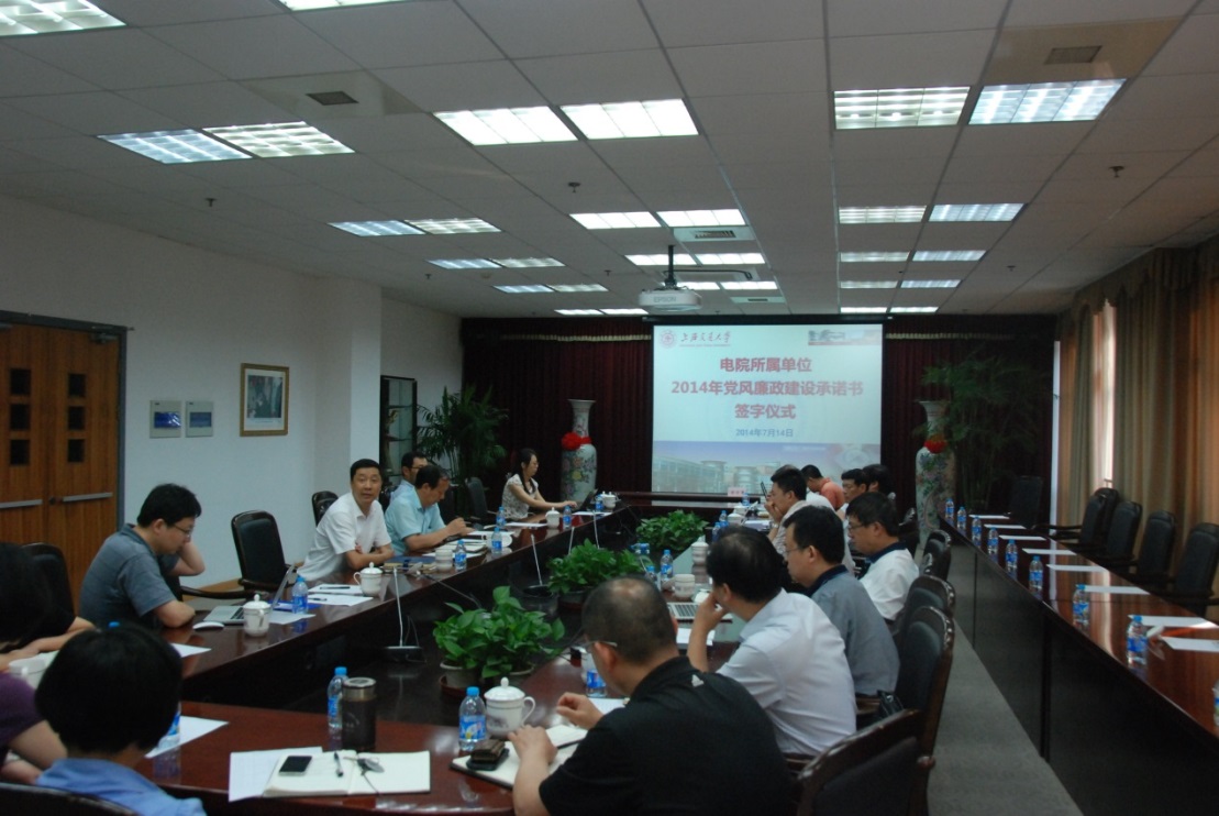 会上,各所属单位党政负责人签订了《电院所属单位2014年党风廉政建设承诺书》。
