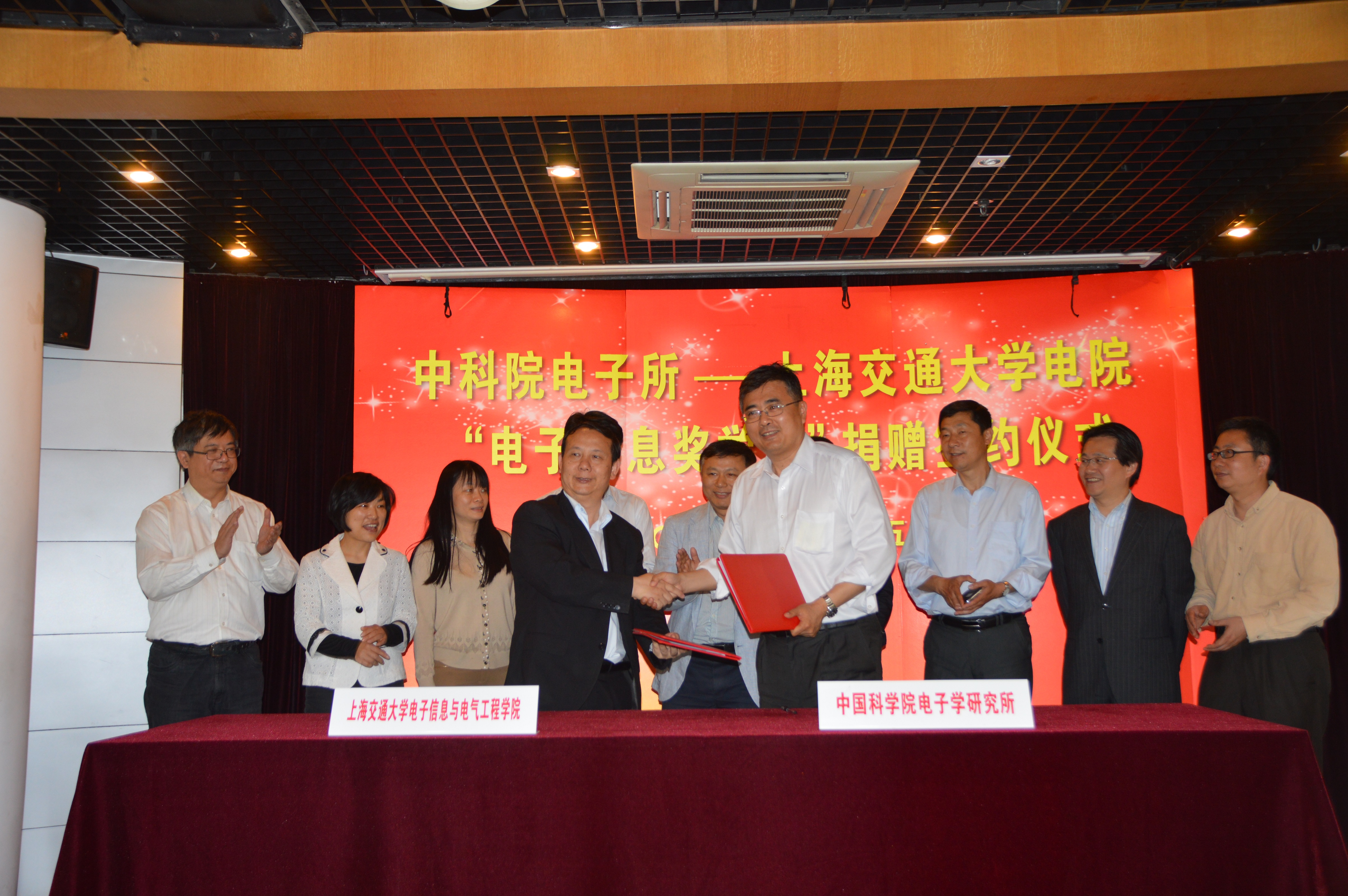 5月15日,中国科学院电子学研究所所长吴一戎,所长助理、研究室主任付琨,人事教育处处长卢葱葱,研究室主任梁兴东等一行访问探花 探花 。电院院长毛军发、党委书记苏跃增、研究院院长郁文贤、党委副书记杨一帆及其他教师代表热情接待,双方进行了友好会谈并举行“探花 电子信息奖学金”捐赠签约仪式。
