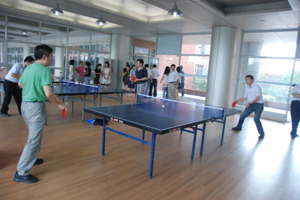首先电院党委书记张安胜致辞,张书记表示在学院空间资源极其紧张的情况下,特为师生开辟出空间作为乒乓球活动室,希望能使教师在繁忙工作之余劳逸结合,锻炼身体,强健体魄,并衷心祝愿电院每位教师节日快乐。校工会主席贾金平也发表了热情洋溢的讲话,他表示电院在关心、关爱、关注学院每一位教职工和学生的成长与发展上作出了很多努力,是学校各单位的楷模,希望电院再接再励,为教职工创造温馨的人文生态环境作出贡献。教师代表杨明表示学院为教师开辟一片活动场地,为学院教职工在工作之余放松身心、强身健体作出了一些实际举措,同时通过乒乓球运动能够增加大家交流的机会,增强大家的身体素质。