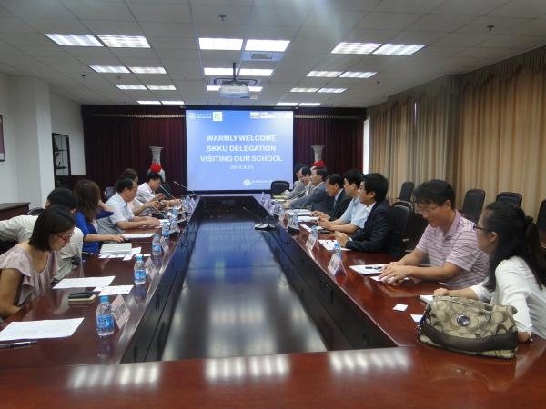 2012年8月23日, 韩国成均馆大学代表团一行来到探花 ,讨论开展双边交流活动。来访人员由韩国成均馆大学信息与通信工程学院的院长、不同研究领域的教授、外事相关工作人员,以及三星公司部门负责人组成。电院常务副院长毛军发、院长助理李萍、电子系教授刘佩林、电子系副教授周军、电子系副研究员熊箭、学院科研办主任何黎明、以及国际化办公室相关工作人员参加了接待活动。