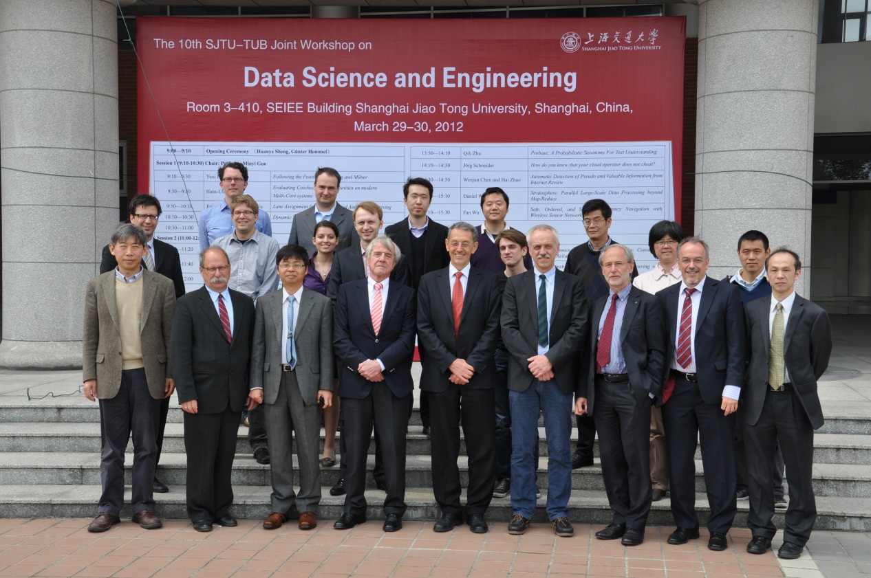 探花 -德国柏林工业大学双边交流暨“数据科学与工程”研讨会于2012年3月29日-30日在探花 闵行校区探花 举行。德国柏林工业大学新任副校长Hans-Ulrich Heiss教授、Günter Hommel教授等8名教授和6名年轻教师参加了本次研讨会。交大计算机系主任过敏意教授和德国柏林工大Hommel教授在开幕式上致辞。研讨主题包括计算机理论、医疗健康信息支撑技术、动态系统建模、现代数据中心管理与服务、互联网数据挖掘等领域。每方各有10个报告在研讨会上发表,展示了在数据科学与工程方面的最新研究成果,并进行了深入的研讨。