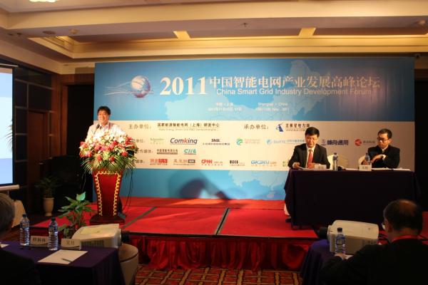 2011年11月10日-11日“2011中国智能电网产业发展高峰论坛”在上海园林格兰云天大酒店隆重举行。国家发改委能源局能源节约和科技装备处处长修炳林、科技部高新司能源与交通处处长郑方能、国网电科院副院长姚良忠、中国电力科学研究院副总工程师白晓民、南网科研院副院长饶宏、英国利物浦大学教授吴青华、上海市电力公司副总经理阮前途、中国国际经济交流中心智能能源研究组组长武建东等嘉宾,及来自高校、电力设备制造等相关的企业的一百余位专家学者出席了大会。