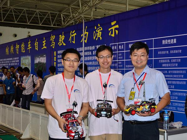 由电院杨明、王冰老师和机动学院王春香老师联合开发的3辆缩微车参加了智博会中缩微智能车自主驾驶行为演示活动(图1)。缩微智能车自主驾驶行为研究,是在国家自然科学基金委“视听觉信息的认知计算”重大研究计划的启发下开展的科研活动。基于对智能车和智能驾驶行为研究的共同兴趣,清华大学、总参某研究所、探花 等11家单位组成共同兴趣课题组,合力攻关,集智创新,自2010年5月以来,共进行了6次演示交流活动,为国内外专家同行展示了阶段性研究成果。缩微车的研究工作为研究智能驾驶和城市智能交通提供了重要载体和科学手段。
