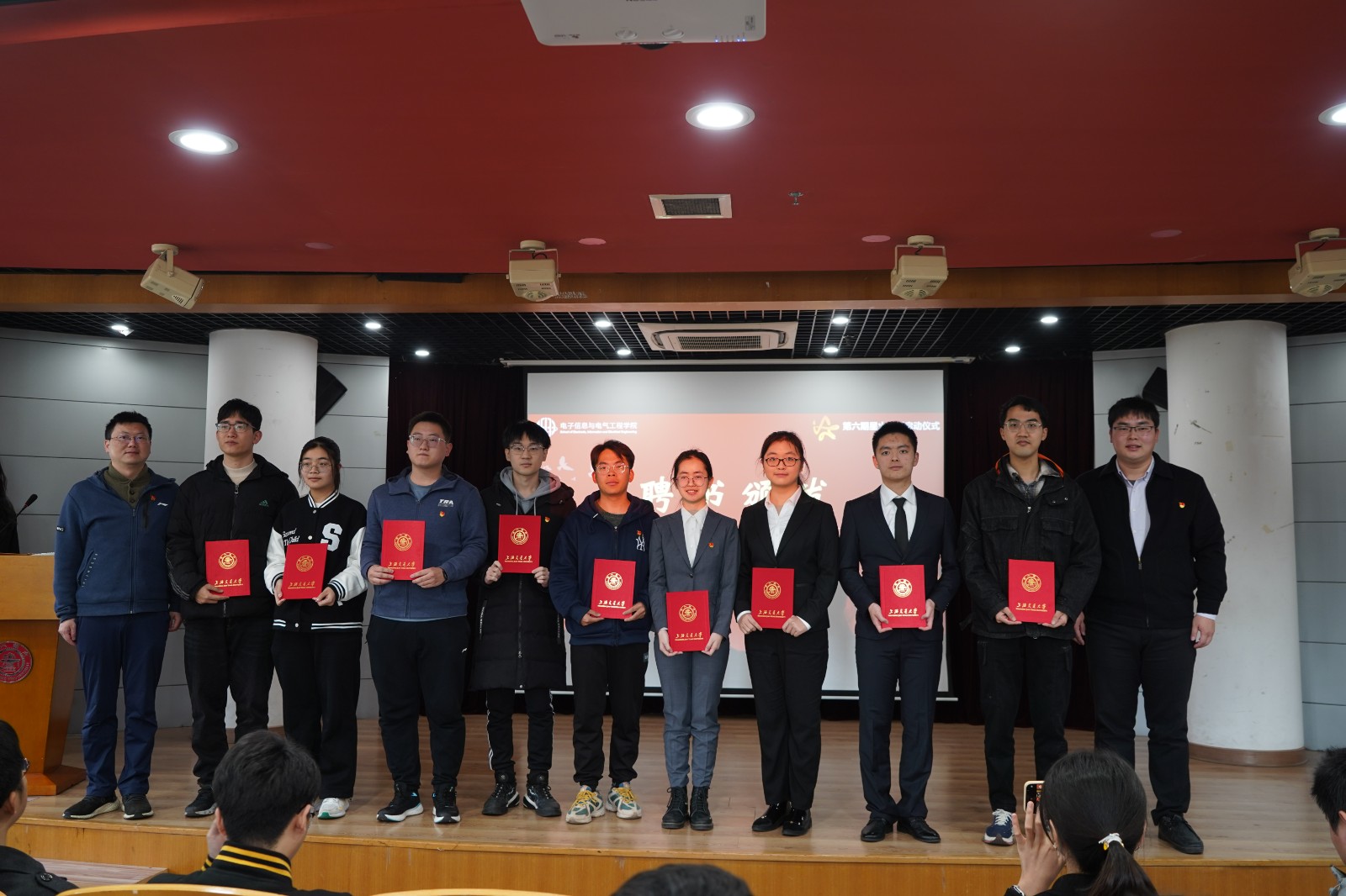 黄文焘、巢睿祺和电院学生党建办思政教师为党建研究会和第六期“星火计划”全体成员颁发证书。