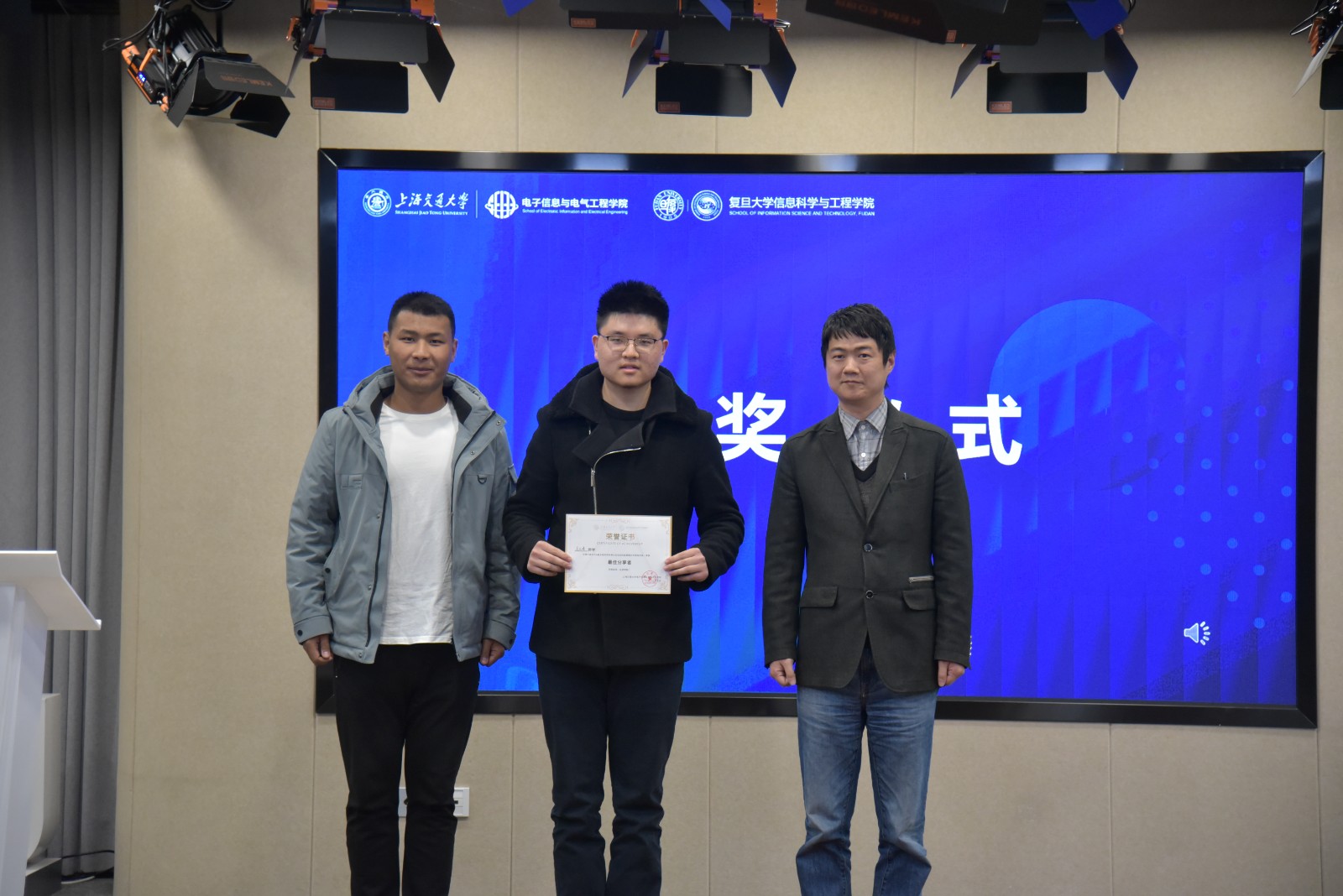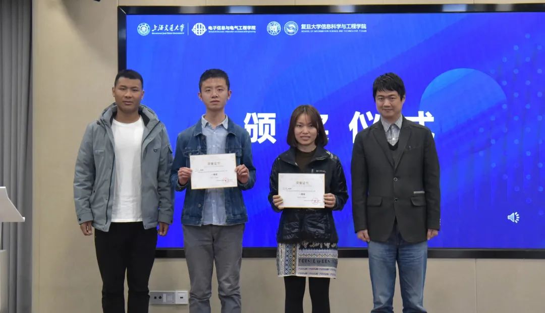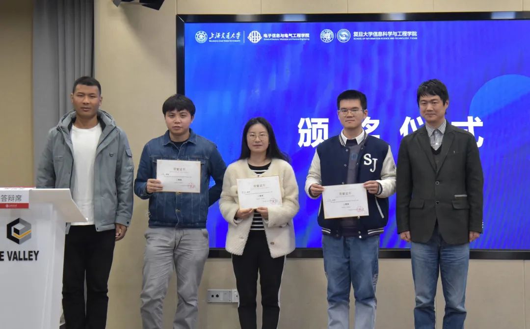 经过分数统计,主持人公布了获奖名单。陈雨亭、李韦萍为获奖同学颁发证书并合影留念。至此,本届交大-复旦电类学科博士生论坛顺利闭幕。