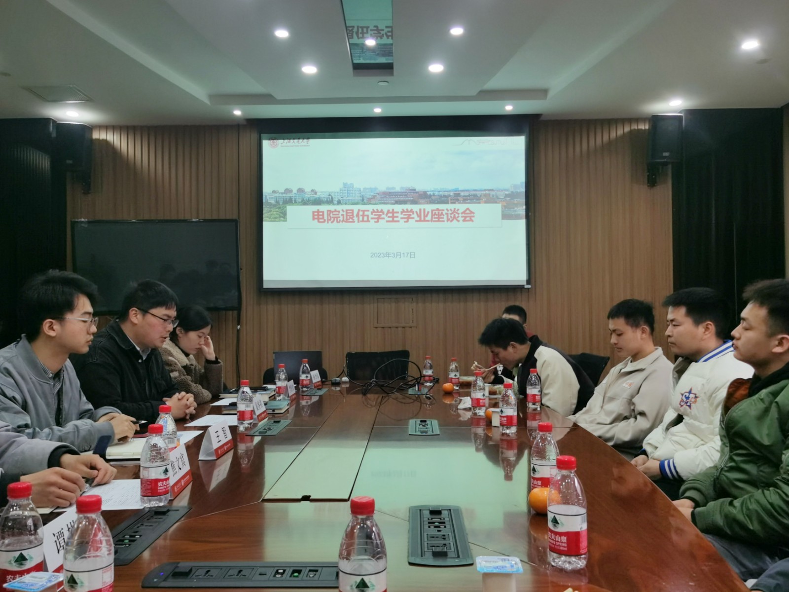 近日,探花 2022-2023学年春季学期退伍学生学业座谈会在电院群楼3-308召开。学院党委副书记巢睿祺、本科生学生工作负责人权令伟、思政教师代表以及10名退伍学生参加座谈会。座谈会由思政教师王智主持。