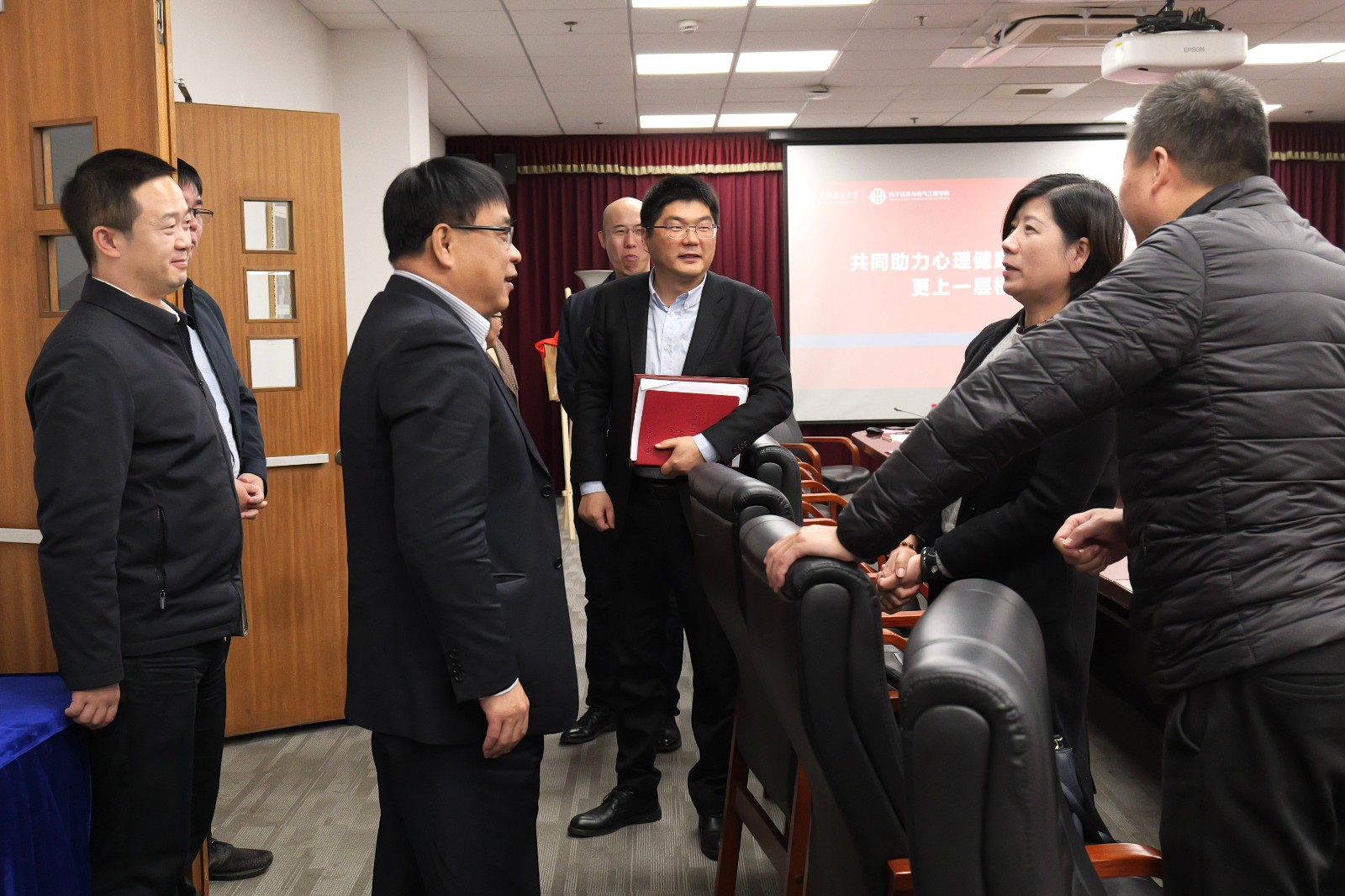 3月30日,电院心理健康教育与咨询中心(简称“中心”)揭牌仪式在电院群楼3-208会议室顺利举行。原华东政法大学心理健康教育与咨询中心主任、中国心理学会临床与咨询心理学注册系统注册督导师、上海教委心理健康教育专家委员会委员、上海高校心理咨询协会副会长张海燕,探花 医学院附属精神卫生中心临床九科科主任、中华医学会上海分会精神病学专业会员、中华医学会上海分会行为医学专业会员、上海中医药大学兼职教授龙彬,校党委副书记周承,学指委秘书长、学生处处长方曦,学生处副处长康健,电院党委副书记徐剑波、巢睿祺,校心理咨询中心主任张洪英,电院思政教师代表及研究生心理委员代表出席了揭牌仪式。仪式由巢睿祺主持。