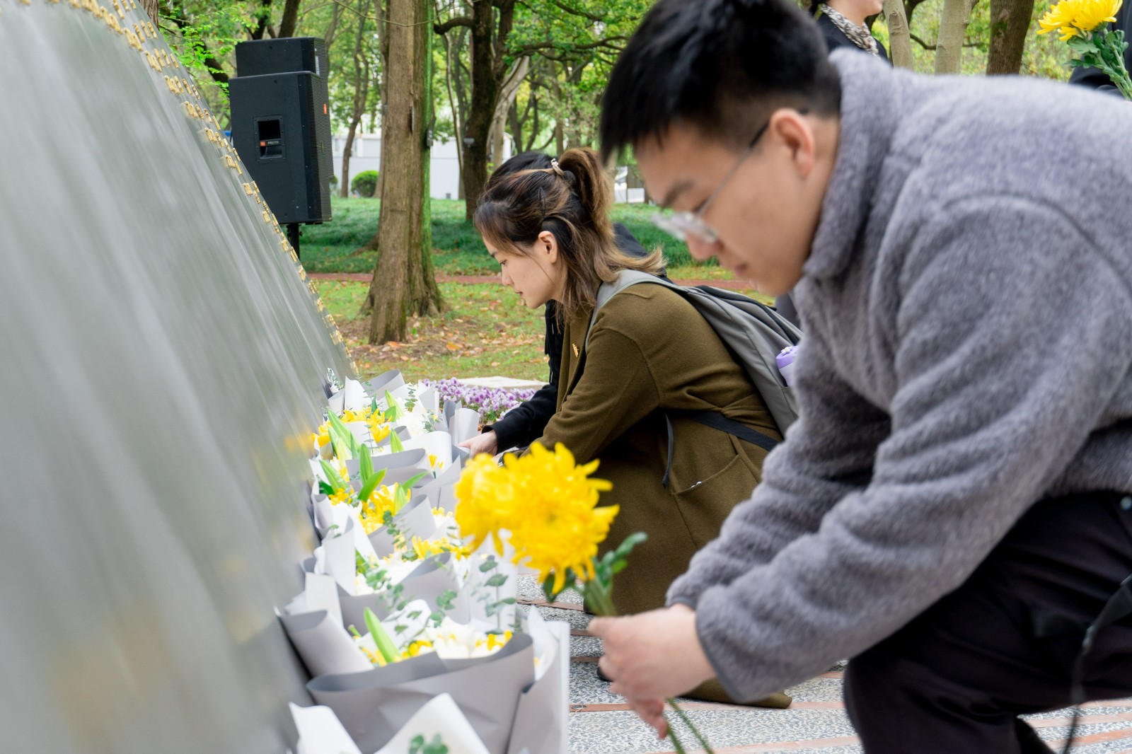活动最后,博士生仪器第一党支部全体党员向英烈纪念雕塑献花,表达了对革命先烈的缅怀和哀思。