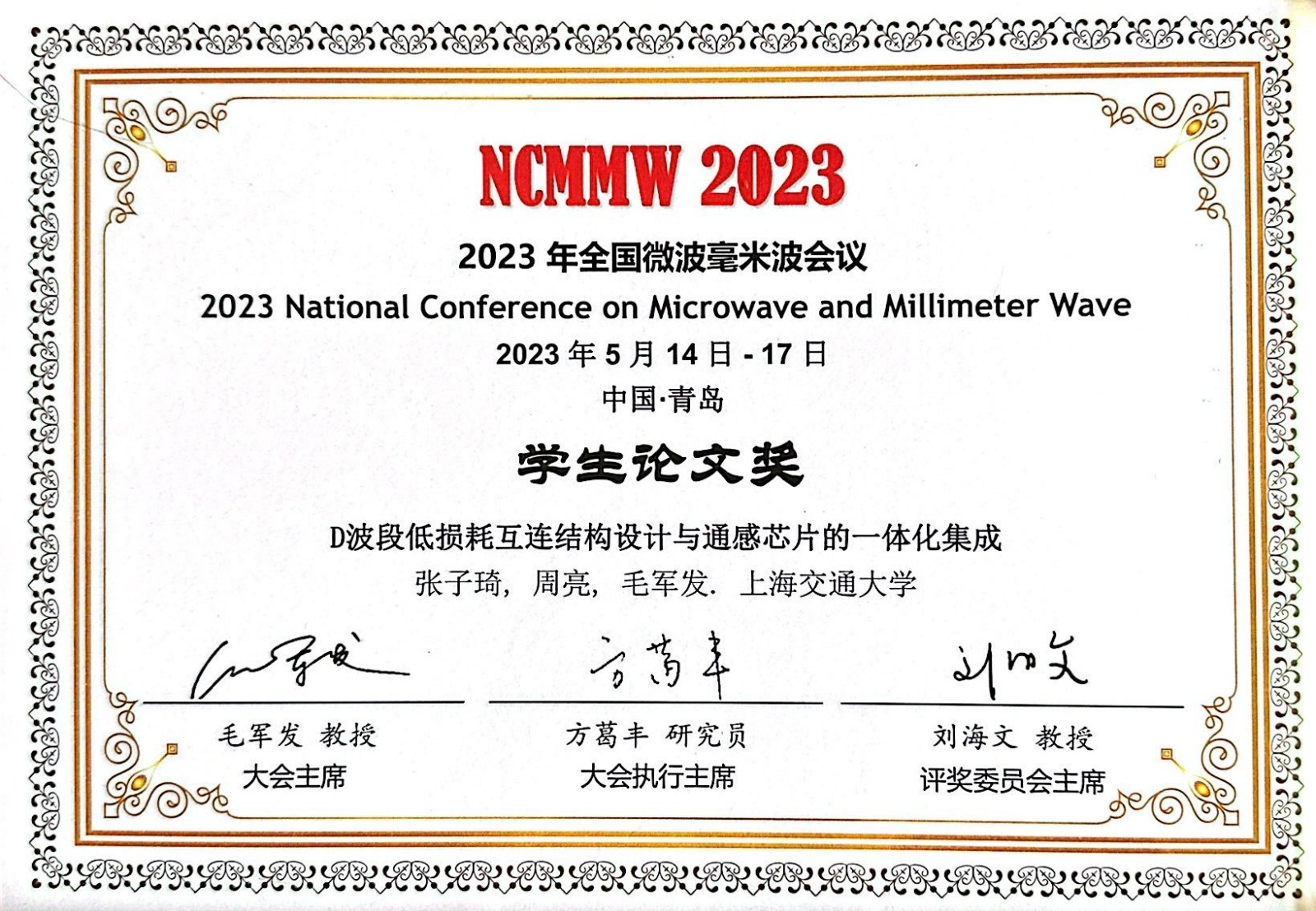 全国微波毫米波会议(NCMMW)优秀学生论文奖