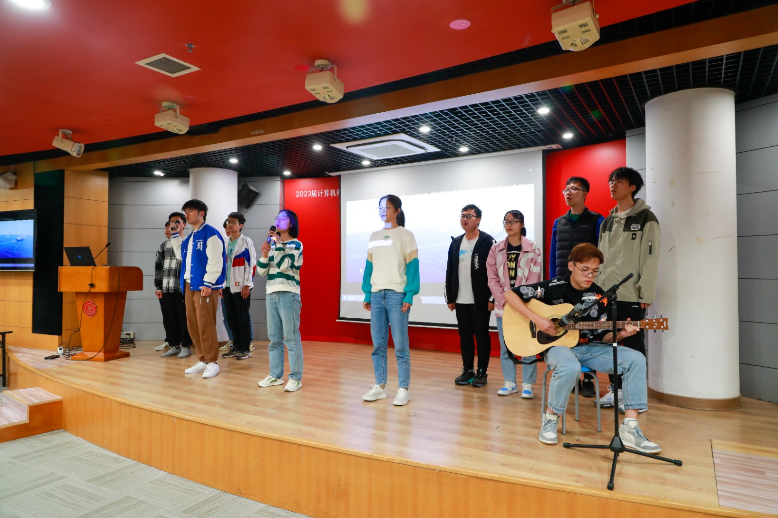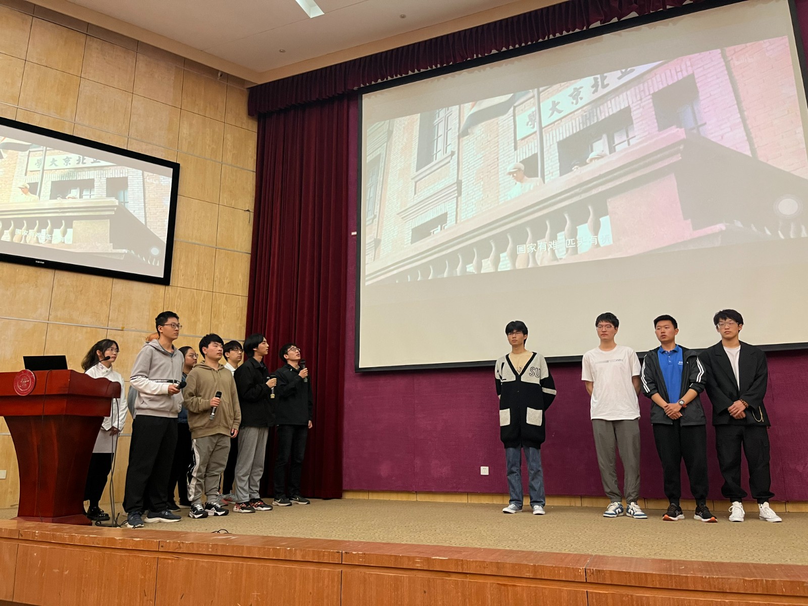 随后上台表演的是E心向党组。第一组与第二组通过配音的方式重新演绎了《建党伟业》中的高燃片段,复现了百年前历史转折关头中国人民在寻路之路上的不懈努力,作品展示了中国共产党的历史伟业,强调了历史的重要性和需要被铭记的价值,表达了新时代交大青年的五四之声和担负时代使命的坚强决心。第三组模仿“青年大学习”形式,拍摄了红色党史短片,以独特的视角和生动的叙述介绍了几位曾为中华民族伟大复兴与社会主义现代化建设奉献自己、牺牲自己的伟人。第四组则现场重现了《建党伟业》中的激昂片段,充满力量的表演展现出了当代青年怀揣梦想、坚定信念、勇往直前的信心与决心,深情诠释了“青年是国家的未来、民族的希望”的伟大主题,以实际行动表达了对党和国家的热爱与对英烈的敬仰。
