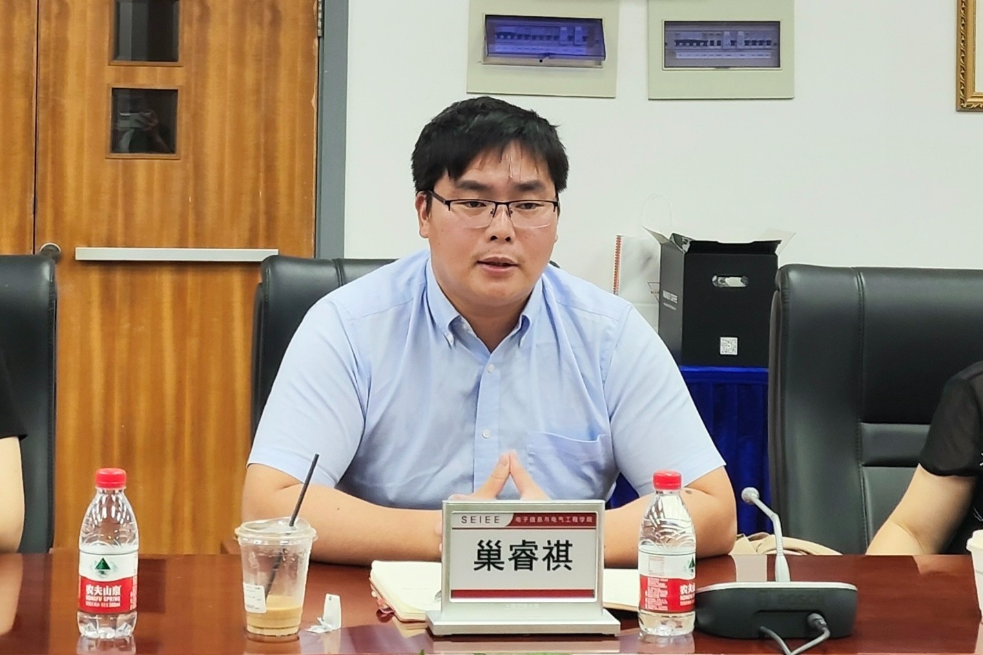 巢睿祺对校学生事务中心一行到电院调研表示热烈欢迎,并就学校对电院资助育人工作的长期支持和帮助表示感谢。