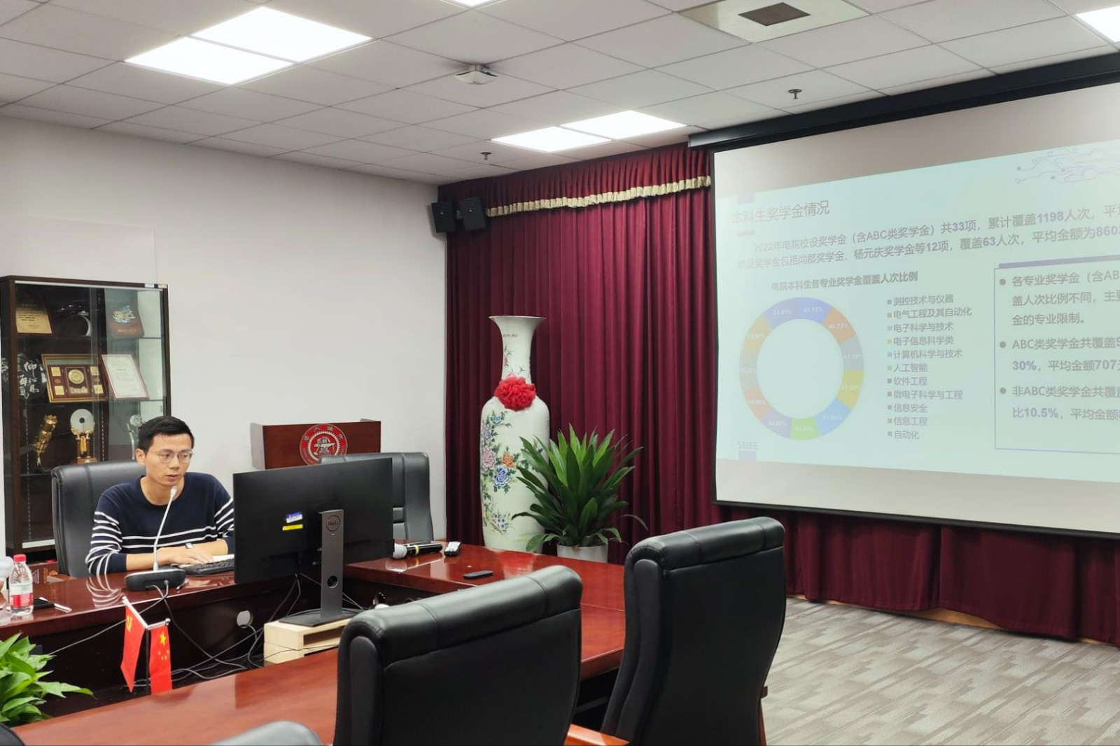 本科生奖学金工作负责人谭涛、研究生奖学金工作负责人施金宏汇报了电院本科生、研究生奖学金工作的总体情况,介绍了电院奖学金特色做法。