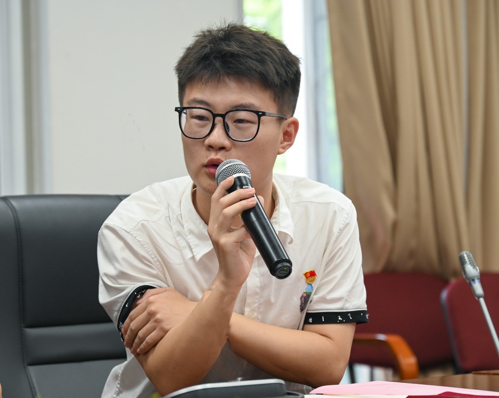 本科生信息安全党支部殷晓亮、本科生微电子党支部靳航飞、本科生软件工程党支部陶昱丞就本科生纵向党支部架构设置、高年级党员传帮带作用发挥等进行发言,并对党员发展流程及模式优化等提出了建议。