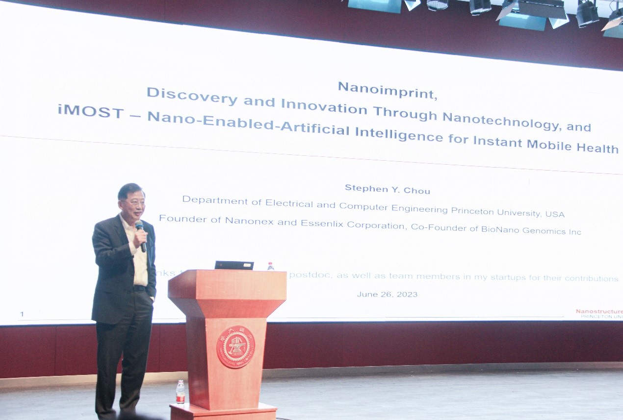 7月5日,美国工程院院士、美国普林斯顿大学讲席教授Stephen Y. Chou(周郁教授)应邀访问探花 ,并作为第194期大师讲坛嘉宾在李政道图书馆报告厅带来主题为“纳米压印光刻和纳米赋能人工智能的便携即时健康检测(iMOST)”的讲座。