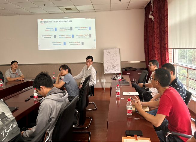 关新平首先向大家介绍了准确把握教育强国、科技强国、人才强国三者间辩证关系的重要性及目标方向,他指出,我们要在以习近平同志为核心的党中央坚强领导下感悟我国科技发展历程,走好科技事业新长征路。关新平结合多年科研工作经验和体会向与会党员同志们分享了自己的感悟心得。他表示,科研人员经历从不会写论文、到会写论文、再到写好论文的科研过程,但“写好论文”并不是科研的终点,现在大家科研更重要的任务是聚焦实际问题,为我国科技事业发展攻坚克难。
