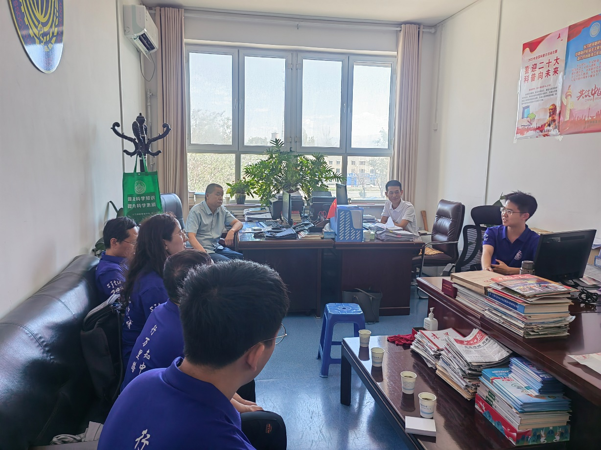 实践团专程前往了新疆生产建设兵团第十三师新星市科协开展科普教育调研。新星市科协主要负责人就十三师新星市的青少年科普活动开展情况进行了介绍,围绕辖区居民科学素质提升与青少年科普教育规划和师生们进行了热烈交流。新星市科协对实践团所做的工作给予了充分的认可,“这次的交流为我们打开了一个新的合作窗口,有助于进一步提升十三师新星市的科普教育水平。”