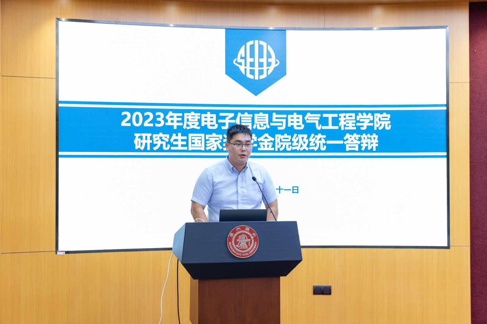 本次院级答辩在图书信息楼8楼报告厅开展,是近年来首次线下答辩。9月21日进行硕士国奖答辩,在答辩正式开始前,电院党委副书记巢睿祺充分肯定了研究生国家奖学金的学术引领作用,表示期待同学们在答辩过程中展现风采。9月22日进行博士国奖答辩,电院党委副书记黄文焘在答辩前致辞,勉励同学们在未来致力于解决关键“卡脖子”技术,把论文写在祖国大地上,为学院和国家的发展贡献自己的力量。