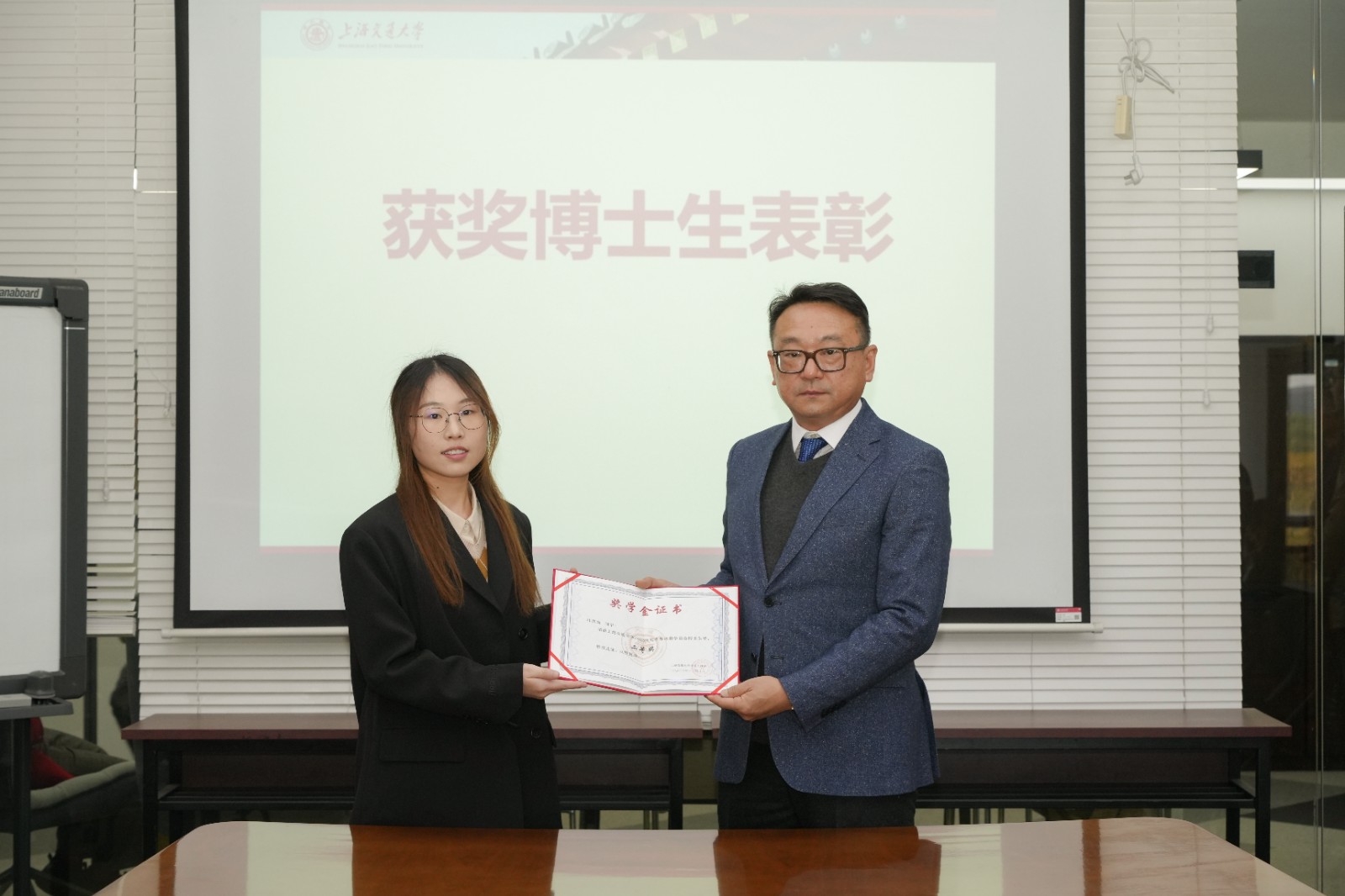 吴林晟宣布荣获2023年度“季寒冰教育基金”获奖名单,其中张永老师获教师奖,刘劲涛获博士生一等奖,叶欣雨获博士生二等奖,熊雨欣获本科生一等奖,刘雅婷、李泽辰、詹纪初获本科生二等奖。季寒冰学长颁发获奖证书,并对获奖者表达了祝福与勉励。